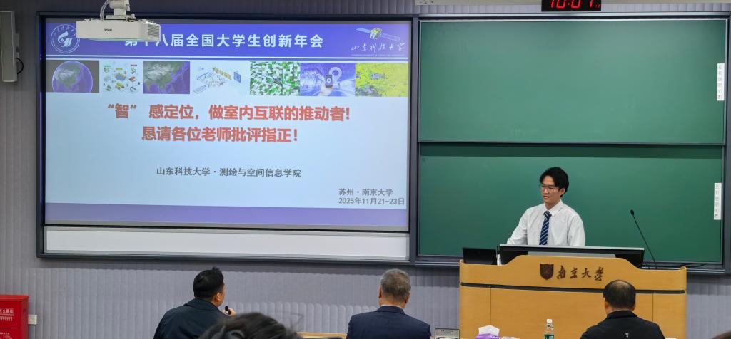 11月21日至23日,以“创无止境 ‘新’潮澎湃”为主题的第十八届全国大学生创新年会(简称“大创年会”)在南京大学苏州校区举行。我院测绘工程专业2021级本科生项赉依托国家级大学生创新创业训练计划项目所撰写的《基于智能手机/手环的融合BLE Beacon/PDR的室内定位方法研究》(指导老师:徐莹)论文作为山东省推荐项目之一参加了本次年会,是我院深化创新创业教育取得的又一重要成果。