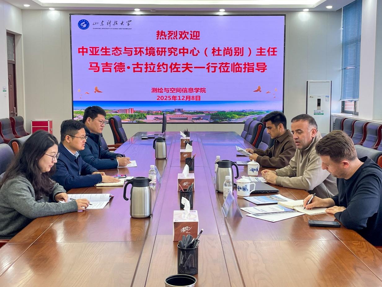 涂锐对代表团的到访表示热烈欢迎,介绍了学院的发展历程、学科特色、科研成果与人才培养情况,并对合作项目的最新进展与核心技术内容作了具体阐述。马吉德·古拉约佐夫介绍了中亚生态与环境研究中心在学生教育、科学研究方面的特色,结合塔吉克斯坦当地的地质灾害现状与迫切监测需求,阐述了北斗技术的示范应用方案。双方就具体的示范应用场景、地点选择及加快推进现场实施等议题进行了务实讨论,并达成多项共识。