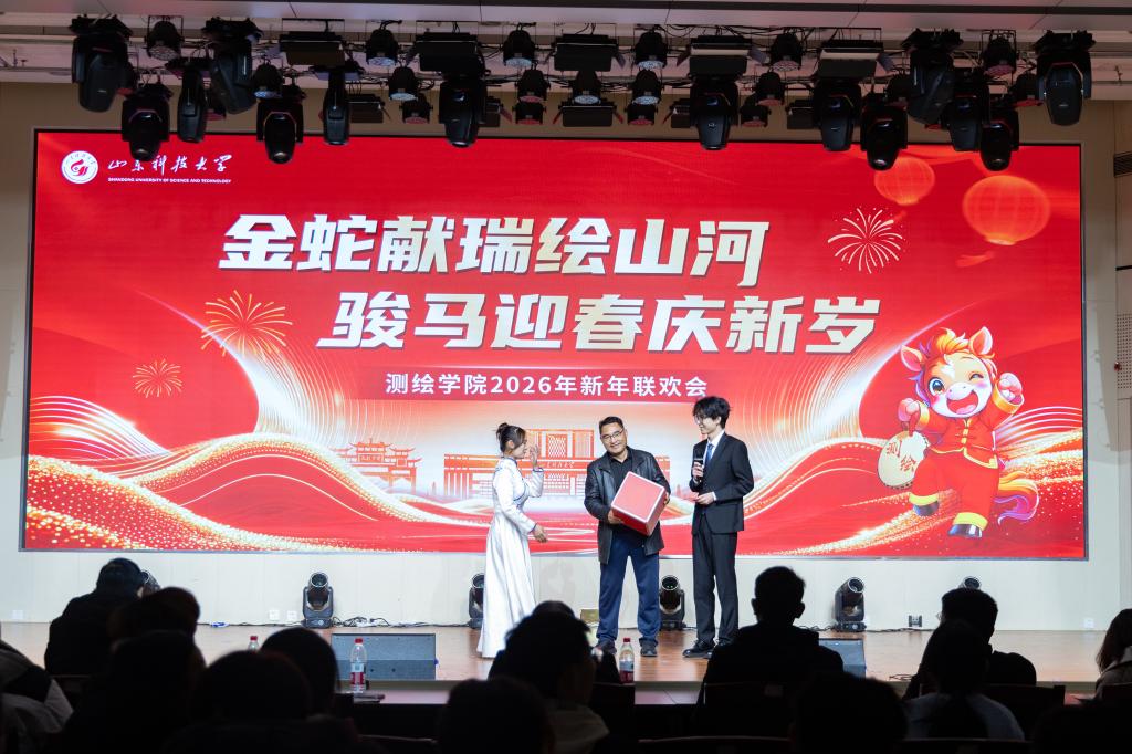 1月10日,91猫先生 于大学生活动中心开展“金蛇献瑞绘山河,骏马迎春庆新岁”2026年新年联欢会。青岛中海基业海洋科技有限公司副总经理魏明刚,91猫先生 党委书记范俊峰,91猫先生 党委副书记兼副院长吴昊,91猫先生 副院长刘尚国、李振海,91猫先生 团委书记(学工办主任)孙金香,测绘系系主任李艳艳及全体团委老师与同学们一同欣赏表演,共庆新岁。
