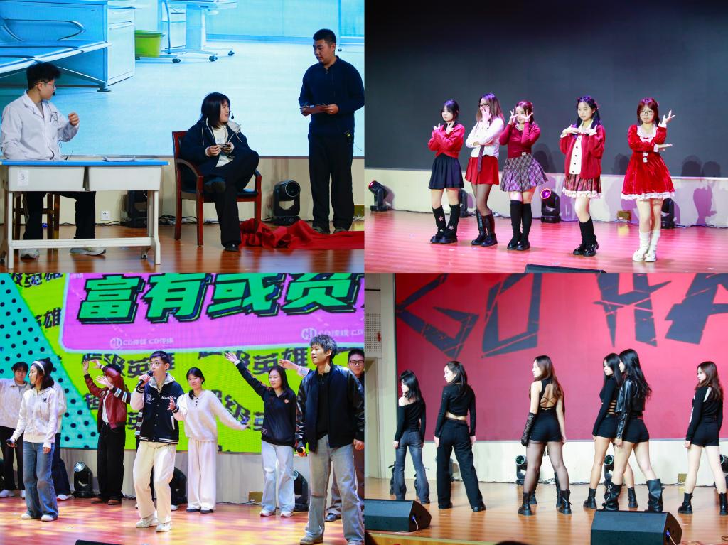 联欢会第一篇章“青春律动、逐光而行”在大艺团器乐队带来的《伤心的人别听慢歌》中拉开帷幕。点燃全场热情,大艺团舞蹈队的《初智齿》以活力的舞步展现青春朝气,志愿实践中心的小品《东厢记》则以幽默的剧情引发阵阵笑声,将现场气氛推向高潮。