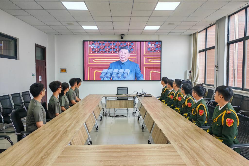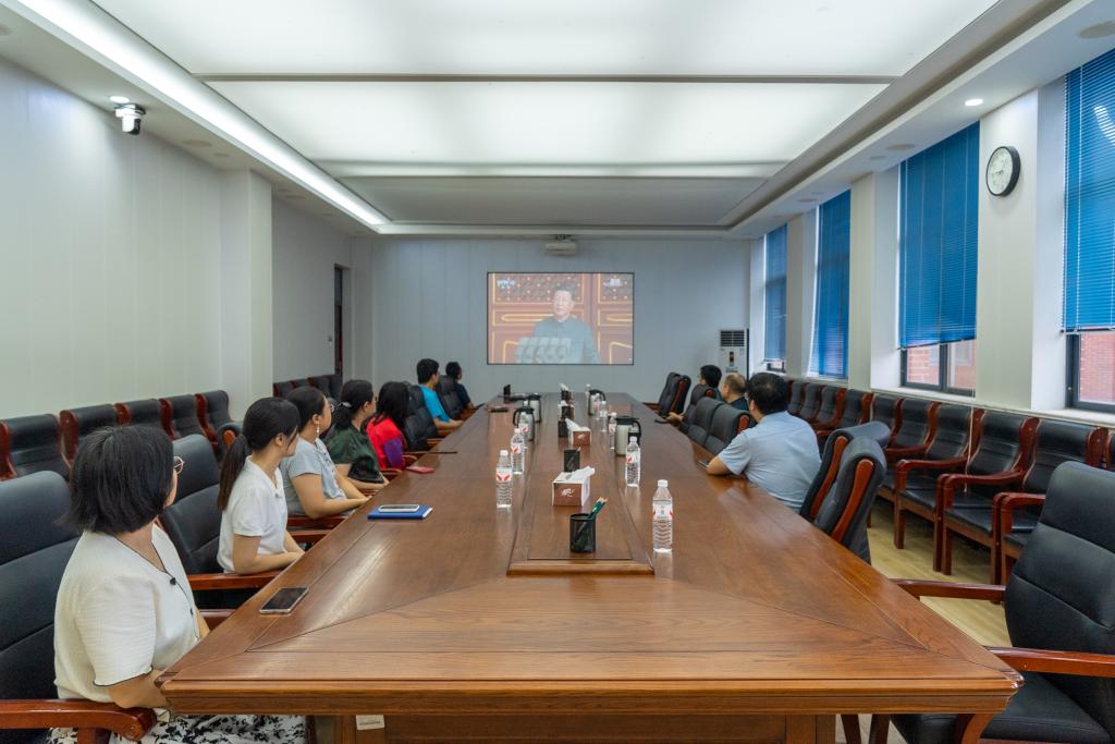 在庄重而热烈的气氛中,师生们目光聚焦屏幕,认真观看每一个环节——从空中护旗梯队护卫旗帜、悬挂标语展现大国气象,到徒步方队中抗战老部队传承红色基因、新力量彰显强军风貌;从战旗方队承载先烈功勋、续写精神荣光,到装备方队与空中梯队亮出“国之重器”、展现现代化国防实力,再到联合军乐团奏响抗战经典曲目、唤醒历史记忆,每一个震撼人心的画面都让大家深受触动。
