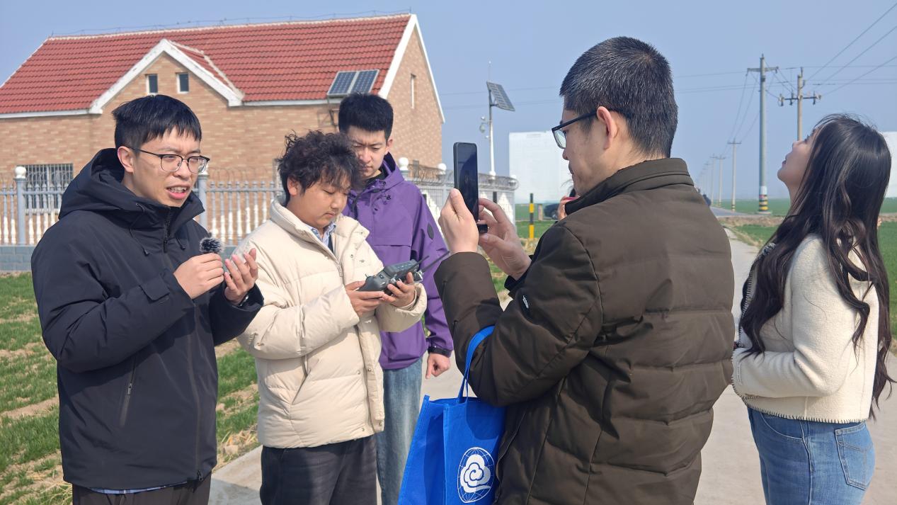 调研期间,在桓台县农业局实验站开展了无人机地面真实观测实验,开展了无人机热红外与多光谱遥感数据获取工作。同时,团队还参与淄博市气象局组织的气象直播活动,学院教师王正东在直播中向公众介绍了多光谱、热红外遥感仪器的基本原理及其在无人机农田巡田中的实际应用,受到广泛关注。