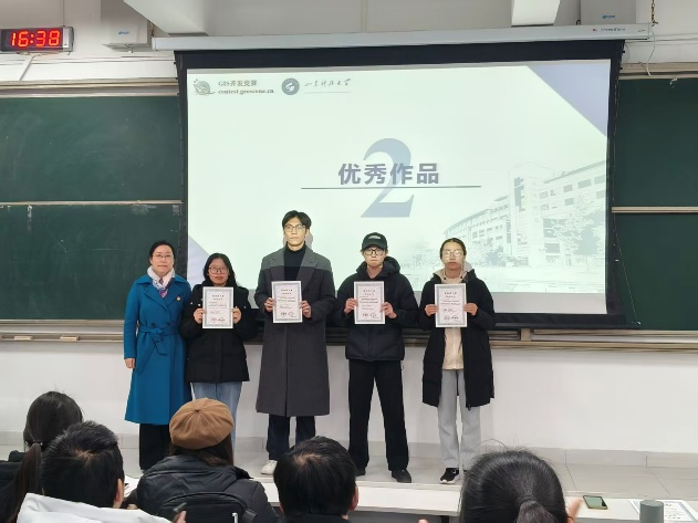 分享会伊始,赵老师与刘老师先后上台发言。两位老师首先对2023级学子在全国大学生GIS应用技能大赛中斩获特等奖表示热烈祝贺,肯定了他们用专业实力为学院争光的优异表现,随后围绕“以赛促学、以赛促练、以赛促创”的育人目标,结合我院学科特色,鼓励同学们主动走出课堂、参与竞赛,将理论知识转化为实践能力,在竞技比拼中锤炼专业素养、提升创新思维,同时叮嘱大家要学会借鉴榜样经验,找准备赛方向,敢于挑战自我。