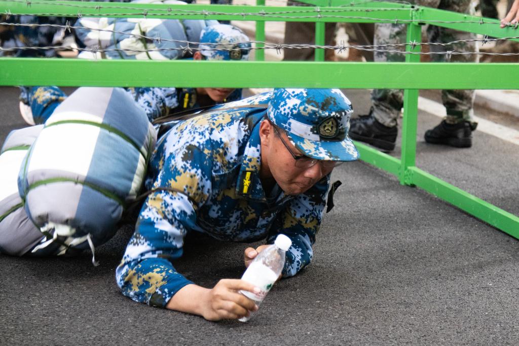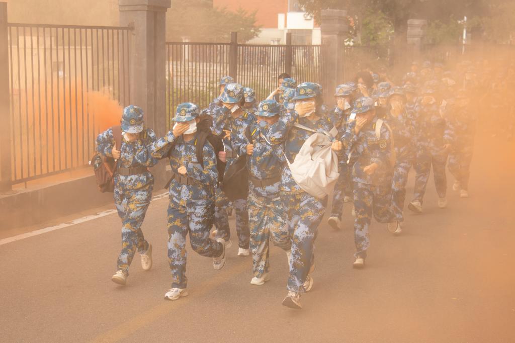 若水园、励志坊、砚湖、笔架山……沿途的风景如画,青山绿水间弥漫着清新的空气,偶尔还能听到鸟儿欢快的歌声,为这次拉练增添了几分生机与乐趣。然而,美丽的景色并不能减轻路途的艰辛。随着路程的增加,不少学生的额头上开始渗出细密的汗珠,脚步也渐渐沉重起来。这时,教官和辅导员们不断鼓励大家:“坚持就是胜利!每一步都代表着成长。”同学们相互扶持,有的帮忙背包,有的递上水壶,还有的唱起了励志歌曲,用欢声笑语驱散疲惫。此外,行军途中还设置了匍匐前进、敌军进攻、染毒地带穿越等环节,测绘学子凭借顽强的意志和团结协作的精神顺利通过。