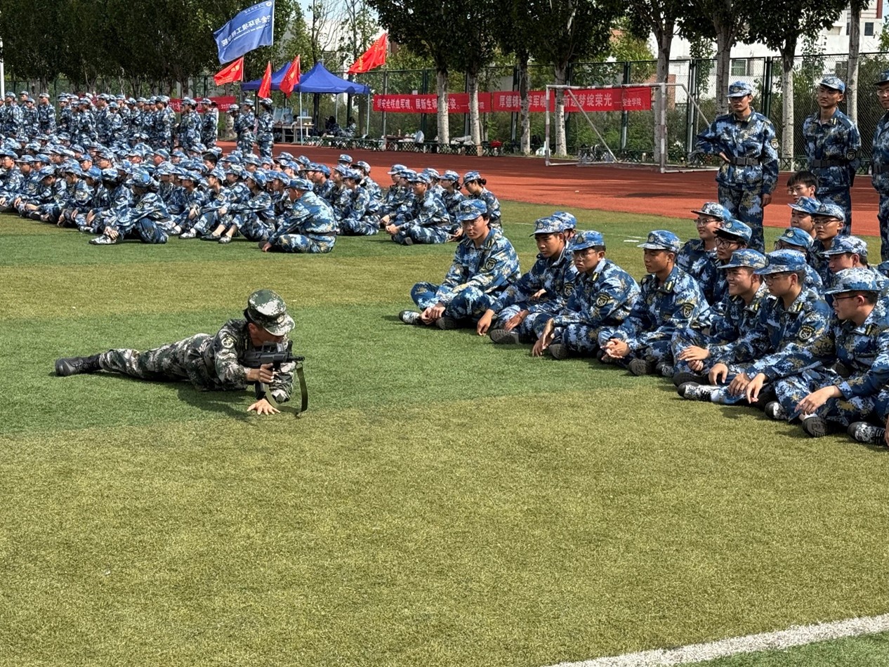 在95式操作训练环节,教官们详细地指导握枪姿势,反复强调练习技巧。两小时训练中,烈日下的汗水浸透了迷彩军训服,却没有一名同学松懈,学生们始终保持专注,在实操中感受枪械操作严谨性与规范性。