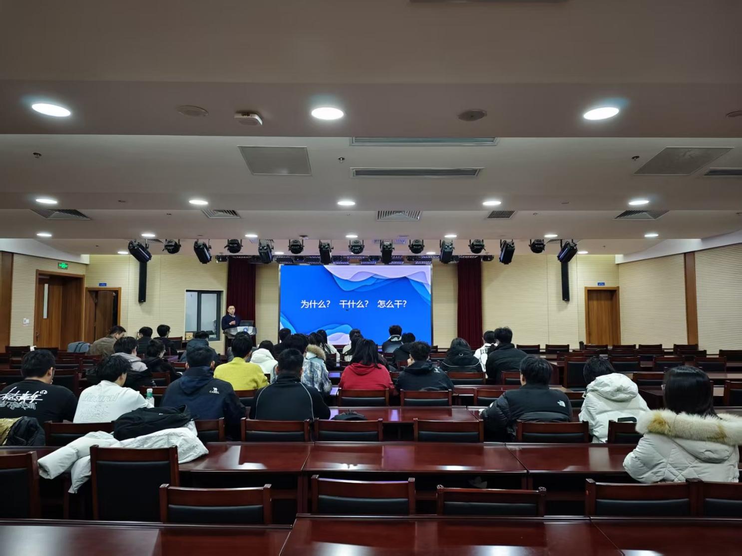 在图书馆尚德讲堂举办校园新闻宣传工作培训,邀请党委宣传部许浩、韩洪烁两位老师作专题分享,学院辅导员张德彪、学院新闻工作室全体人员参加会议。