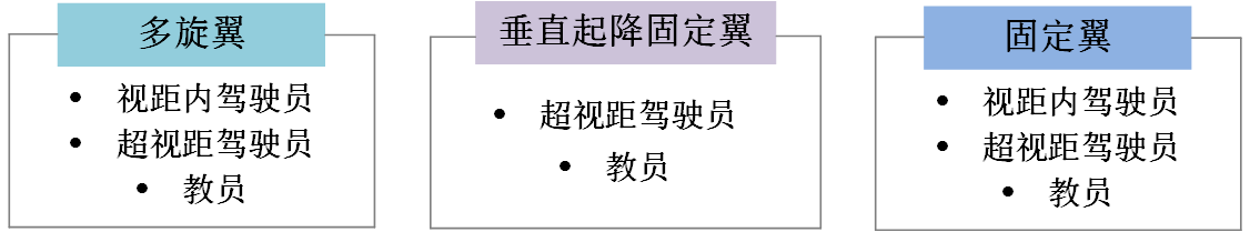 教员:兼容超视距驾驶员权限,可培训驾驶员及机长,主要是培训教学教法,侧重于以后的实际教学应用。